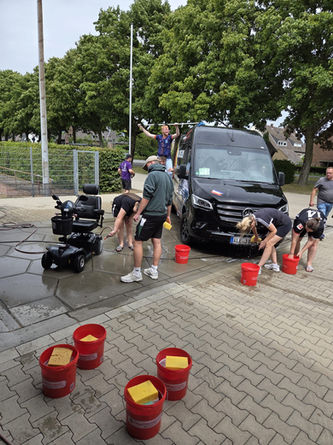 Hä? Wat? Ja, ja... richtig gehört bzw. gelesen. Das Team des Amelandlagers Griethausen hat eine Autowaschaktion gestartet, um Geld für diverse Highlights auf der Insel zu ergattern. Unter anderem für die namensgebende Kutterfahrt. Gegen eine freiwillige Spende (und von der gab es dankenswerter Weise etliche) konnte das eigene Vehikel semiprofesionell geschrubbt werden lassen. Mit Eimern, Schwämmen sowie Hoch- und Tiefdruckreinigern bewaffnet, fielen die emsigen Betreuerinnen und Betreuer der diesjährigen Ferienfreizeit über die wehrlosen Fahrzeuge her. Vom Kinderfahrrad über Seniorendrahtesel, vom Klein- PKW bis hin zum Wohnmobil war alles dabei, was der Griethausener Dorf- Fuhrpark zu bieten hatte. Selbst die Feuerwehr der Stadt Kleve hat es sich nicht nehmen lassen, zwei ihrer lebensrettenden Einsatzwagen in neuem Glanz erscheinen zu lassen.